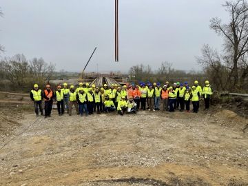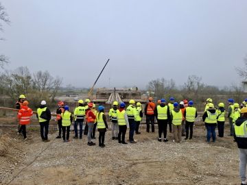 Študenti tak mohli sledovať jeden z najnáročnejších procesov pri výstavbe mostov – výkladku nosníkov, ktoré dosahujú dĺžku 42 metrov a váhu 87 ton. Tento proces si vyžaduje mimoriadne presnú koordináciu techniky aj ľudí.